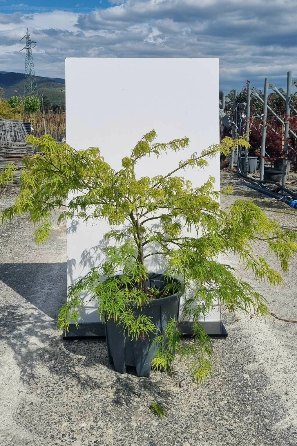 Description:Common name: Cut Leaved Japanese Maple. Small mushroom shaped shrub, weeping habit. Deciduous with finely cut green foliage, green in autumn
