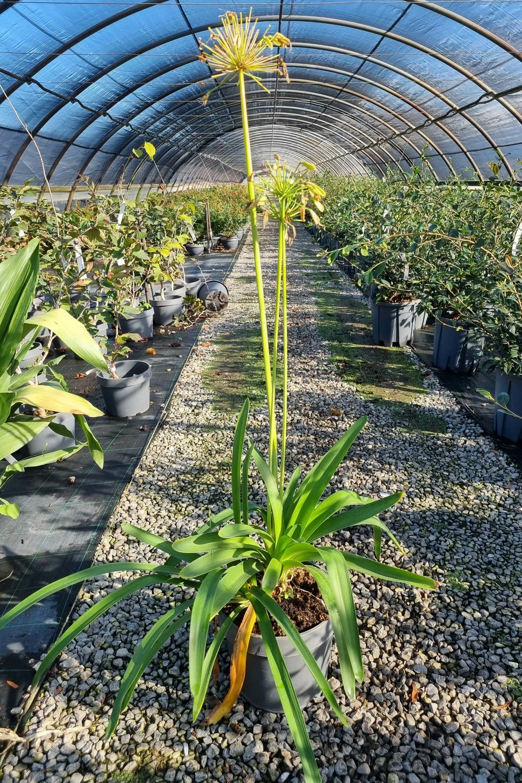 Description:Common name: African Lily/ Lily of the Nile. A compact and prolific flowering form of semi-evergreen Agapanthus with pure white flowers. Masses of tall flower stems are produced in late summer