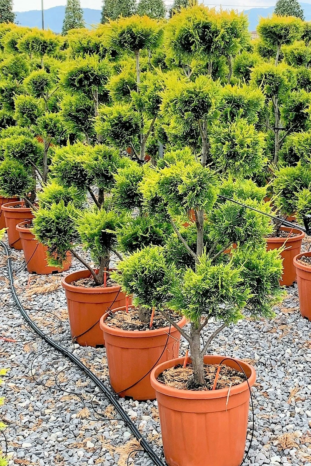 Description: Fast growing conifer with a conical habit. Foliage is bright yellow, and it holds this colour through the year
