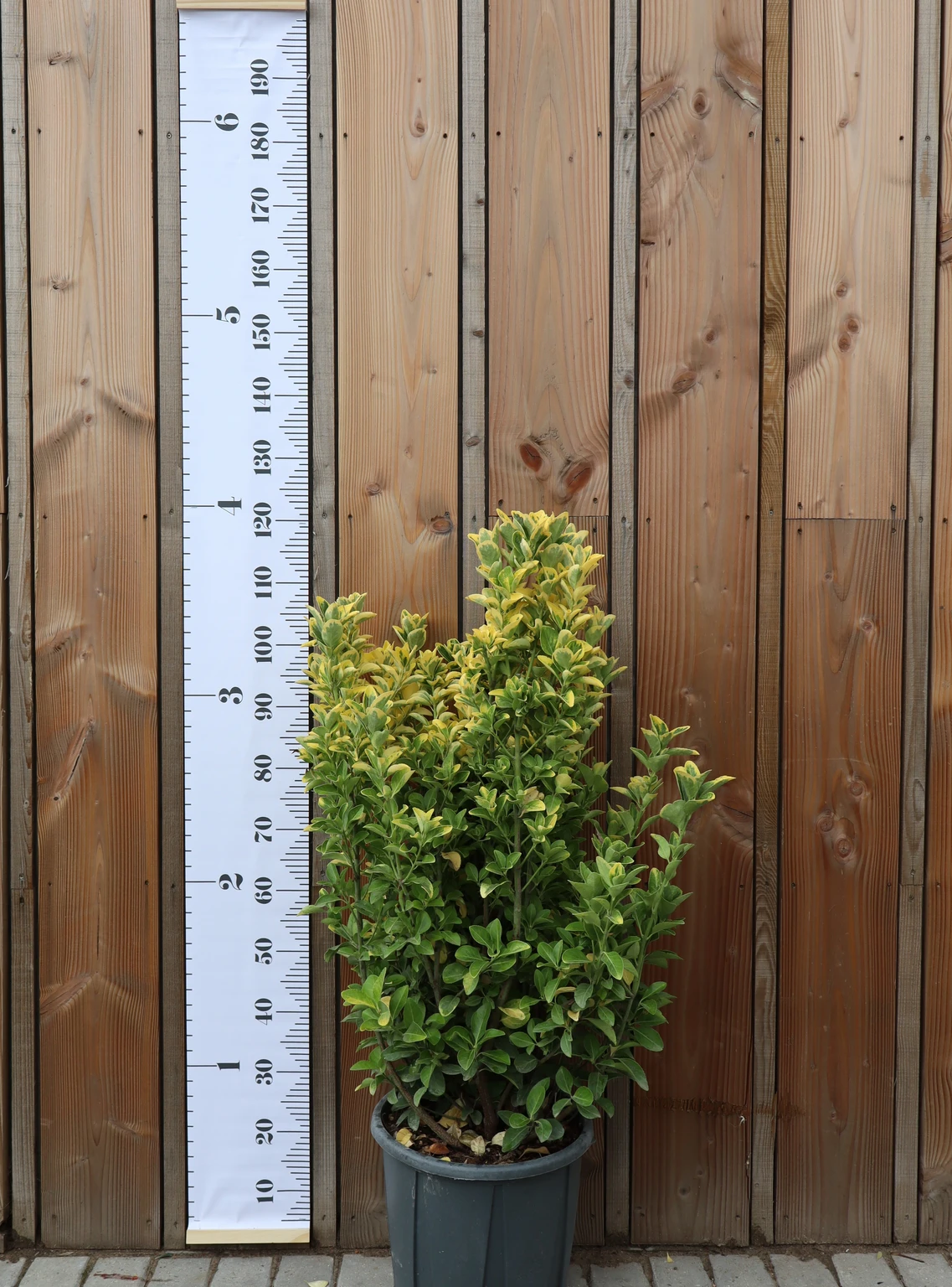 Description:Common name: Euonymus jap. 'Elegantissimus Aureus'. An evergreen shrub with an upright habit. Golden-yellow variegated foliage