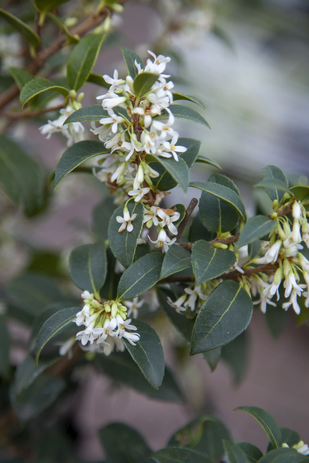 Description:Common name: Burkwood osmanthus. A very useful plant as it has the deepest green foliage which acts as a perfect backdrop for the small clusters of exquisitely scented flowers in late winter, and also provides a backdrop for any flowering plant throughout the summer