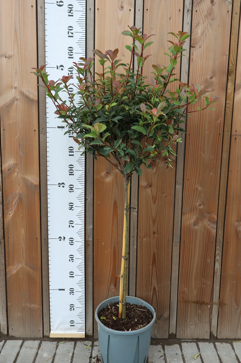 Description: A new selection of 'Red Robin' that is much more compact in habit with erect growth. The new growth is intense red in colour and ideal for Topiary
