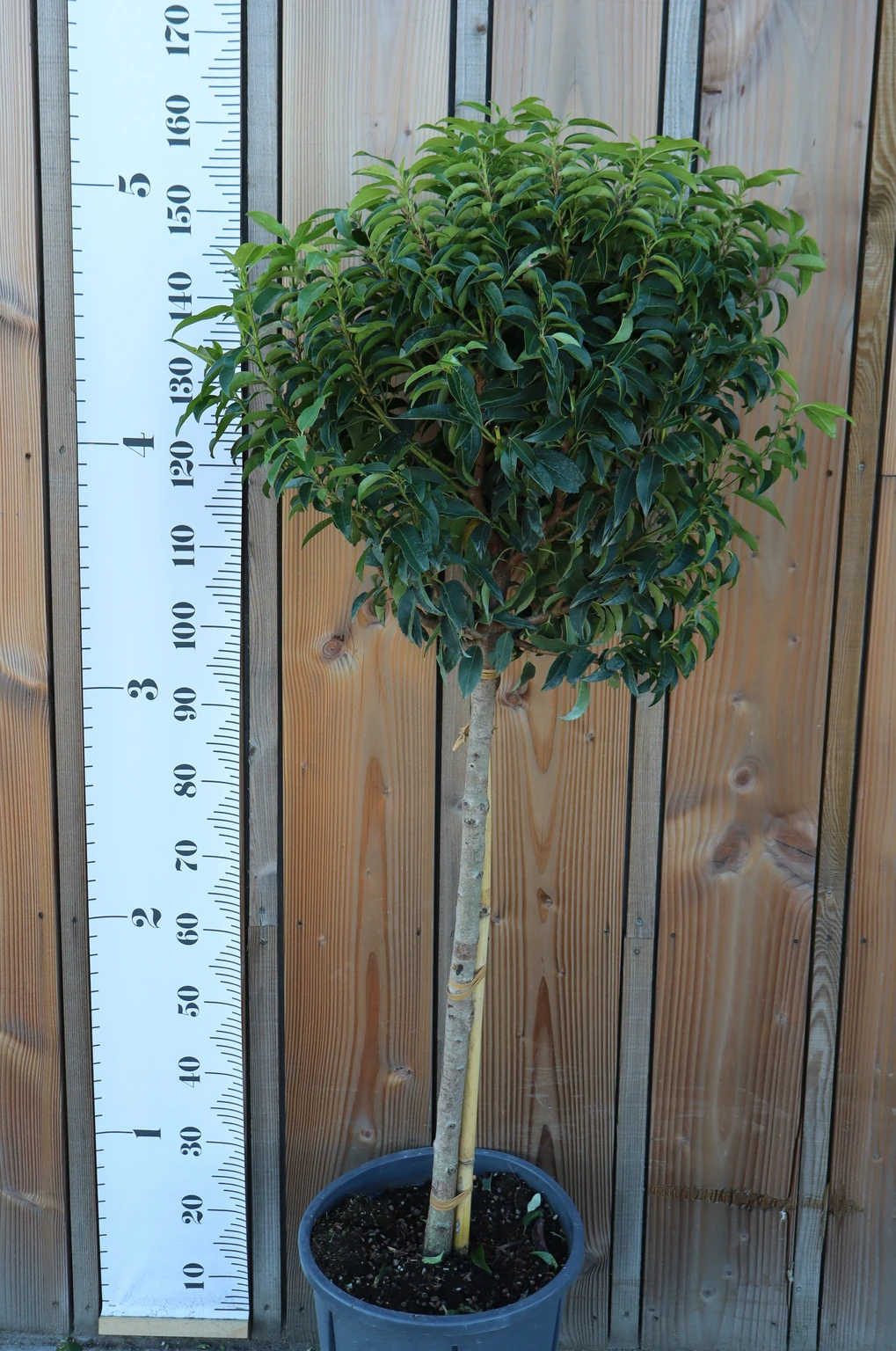 Description: Common name: Narrow leaved Portuguese laurel. Rich evergreen neat leaves which are smaller than the species. This form has even darker leaves and is smaller and slower growing. This less vigorous habit makes it more suited for use as a topiary subject