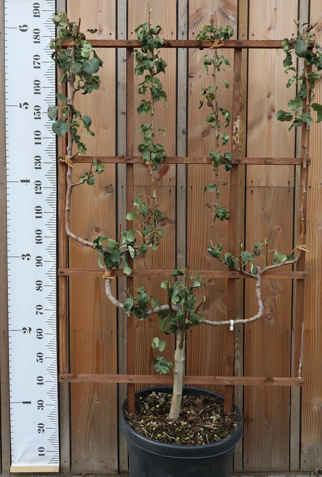 Description: Common name: Pear 'Williams Bon Chretien'. The best early Pear, strong and upright growth. Golden yellow, juicy and sweet fruits. Does not store well